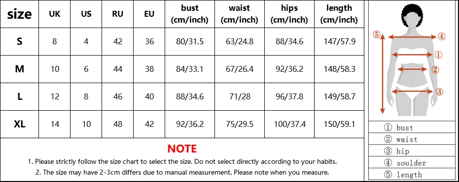 | Size (cm) | Bust | Girdle | Hip circumference | Length |