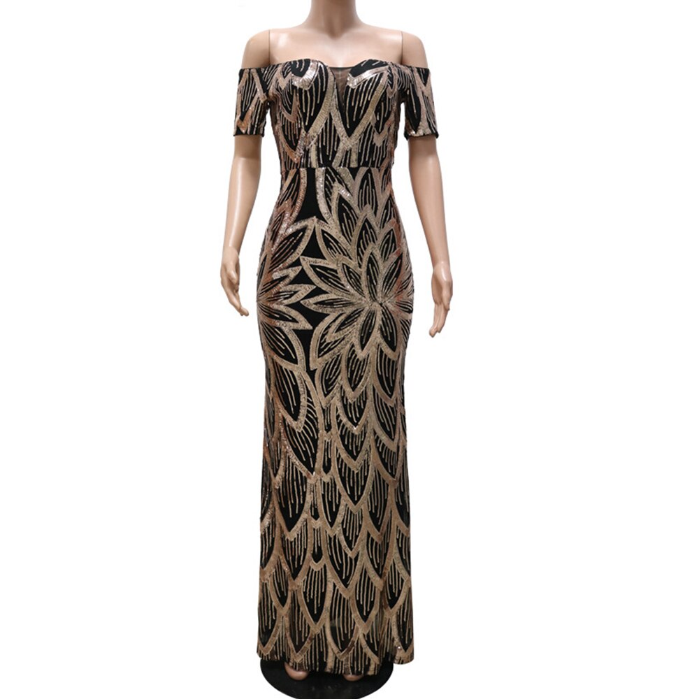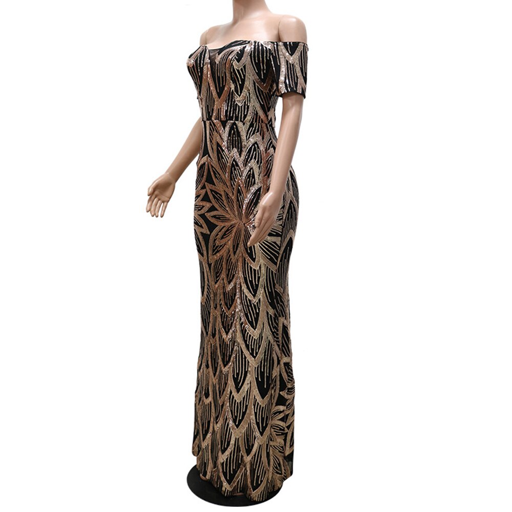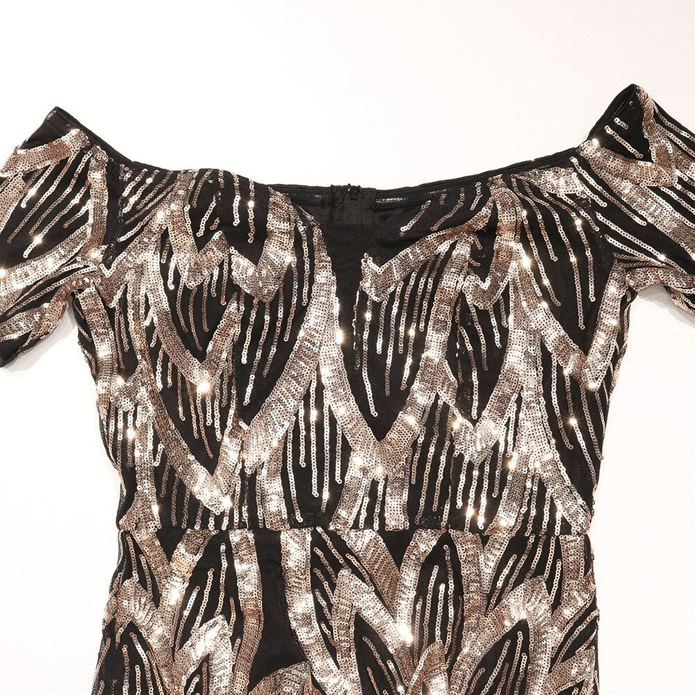 Gold & Black Sequin Off Shoulder Maxi Dress