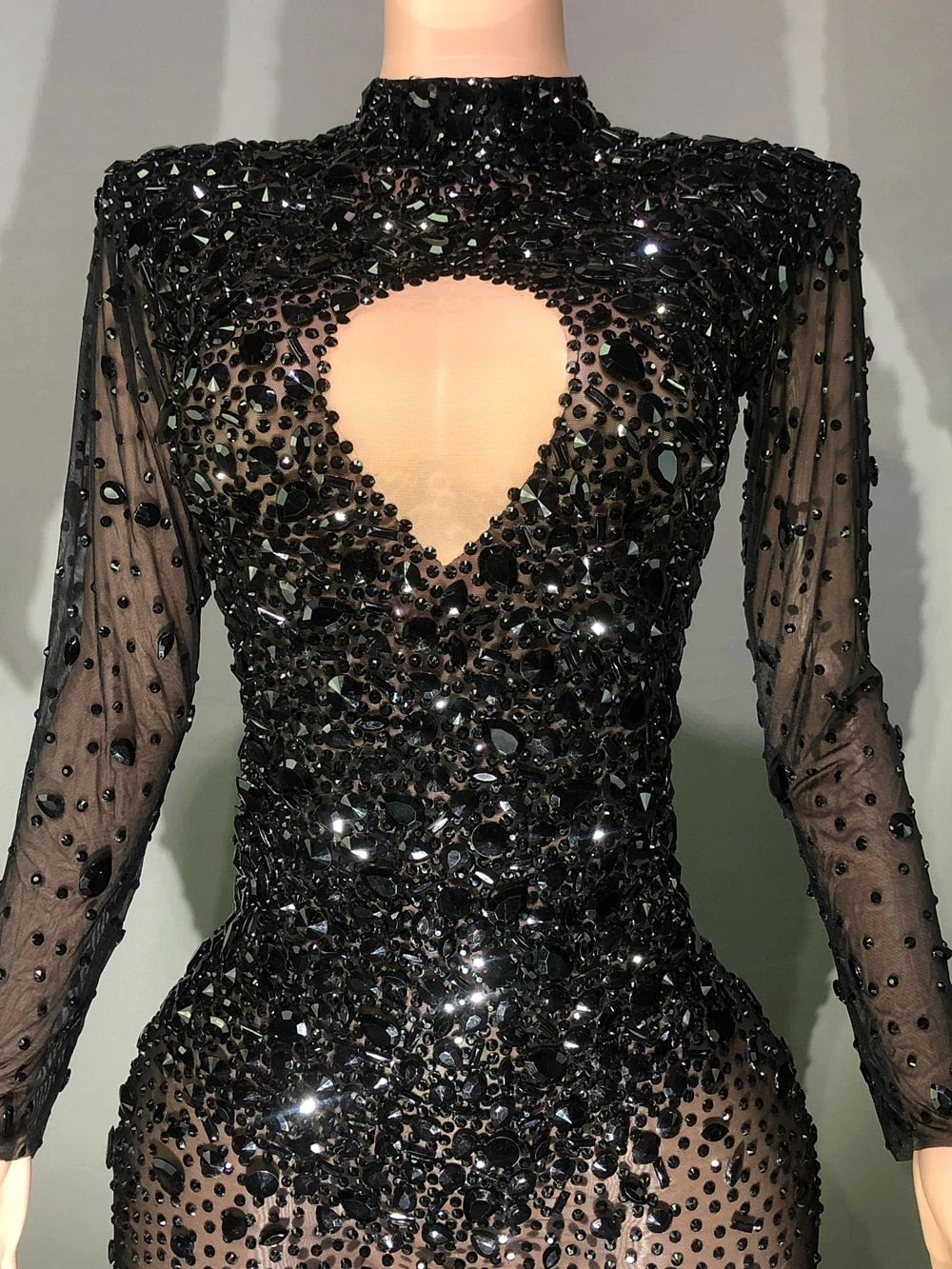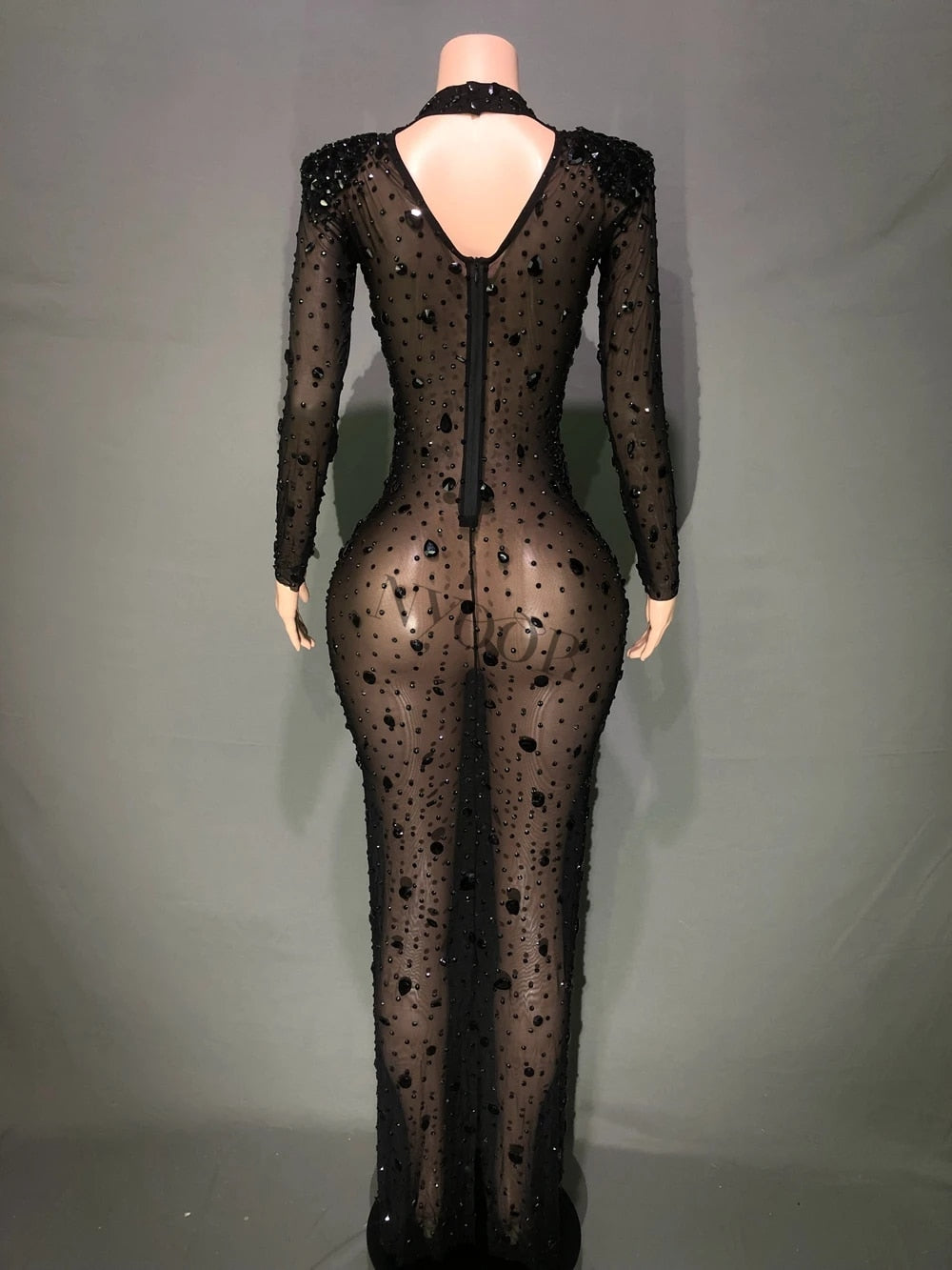 Rhinestones Hollow V Mesh Long Dresses