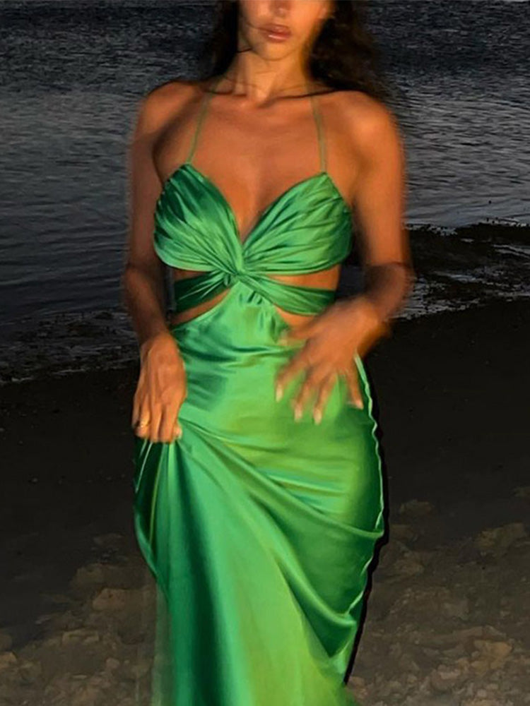 - Model Number:Women Fashion Cutout Design Silk Satin Dress