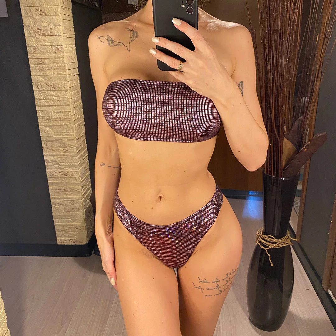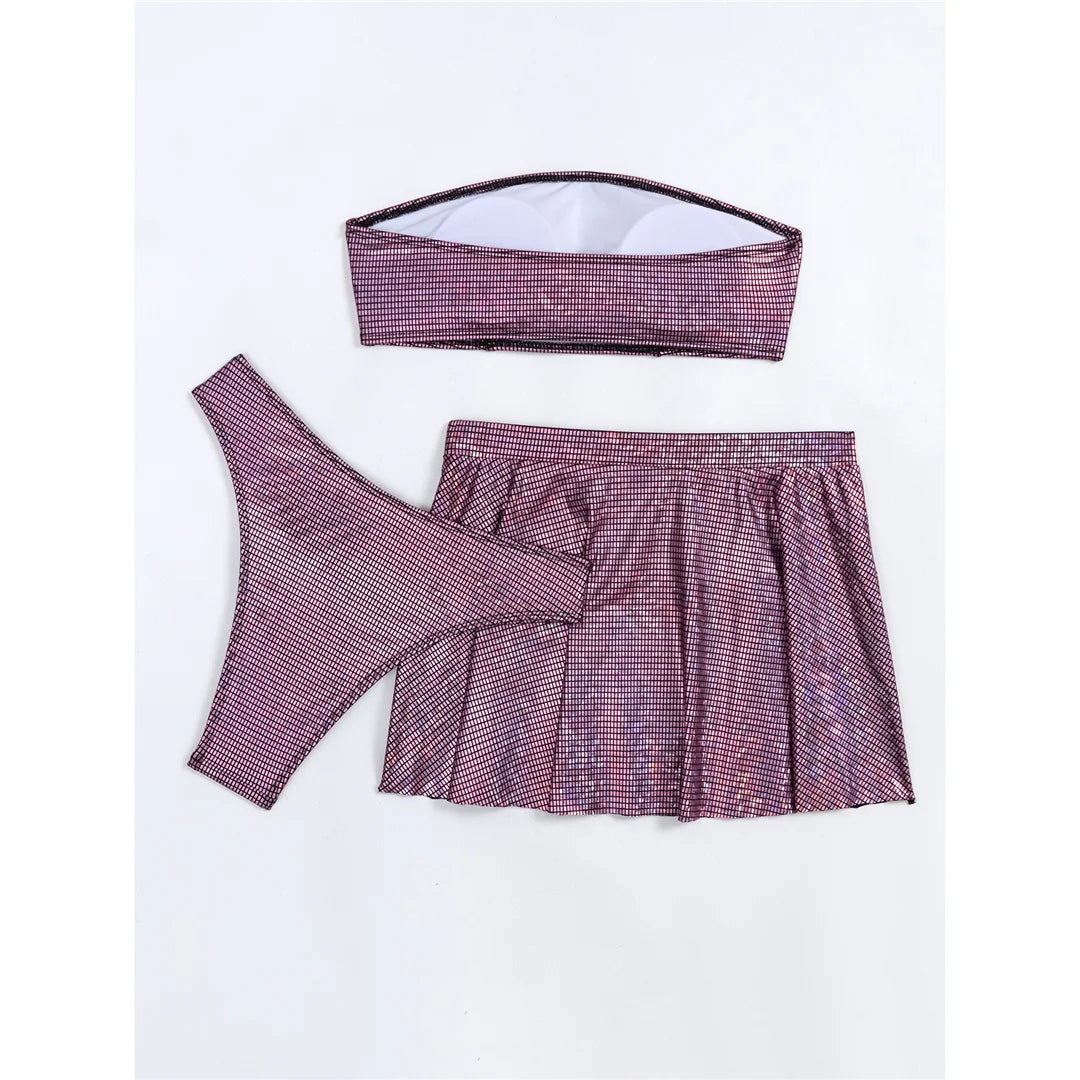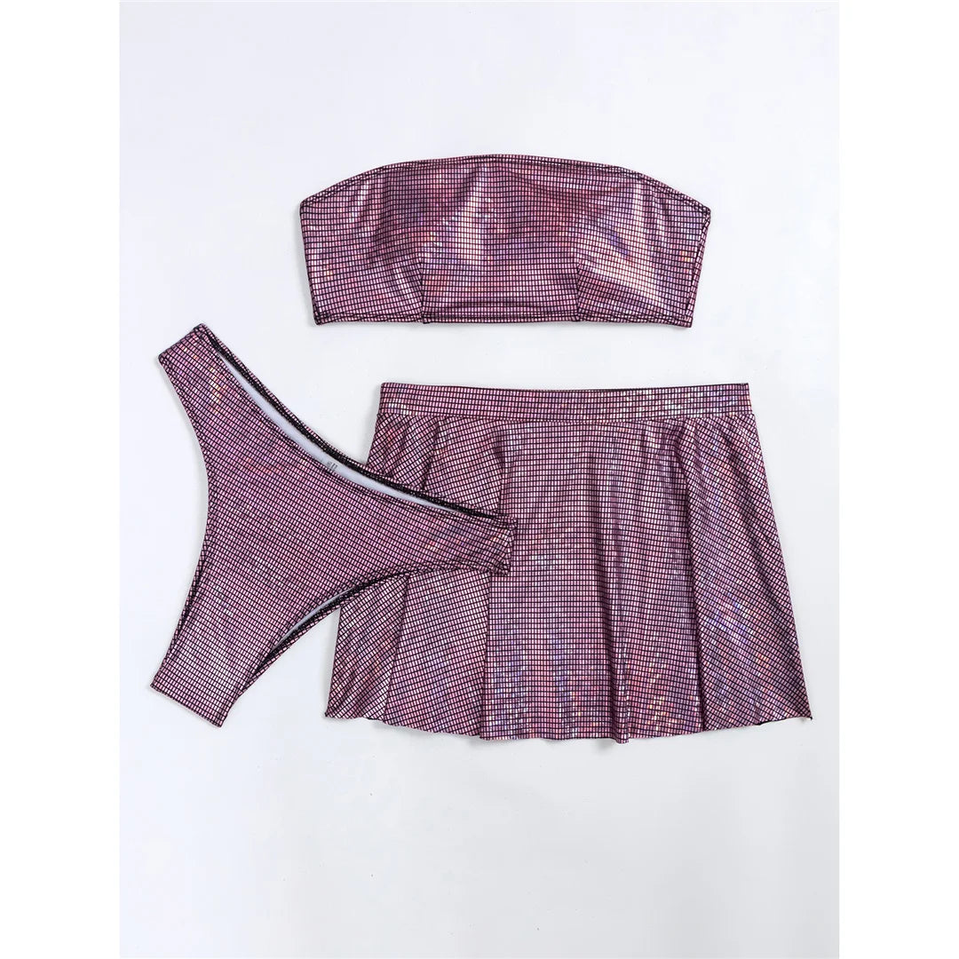 Shiny Purple Brazilian Bikini Set & Mini Skirt